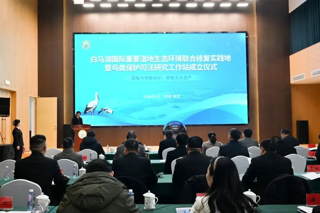 2026年2月2日,正值第30個(gè)世界濕地日,江蘇淮安白馬湖國(guó)際重要濕地迎來(lái)里程碑時(shí)刻——白馬湖國(guó)際重要濕地生態(tài)環(huán)境聯(lián)合修復(fù)實(shí)踐地暨鳥類保護(hù)司法研究工作站成立儀式在此舉行。淮安市副市長(zhǎng)封蘊(yùn)珊,淮安中院黨組書記、院長(zhǎng)郁奇,省法院環(huán)資庭庭長(zhǎng)周亞冠出席儀式。活動(dòng)由淮安中院黨組成員、副院長(zhǎng)李玲主持。