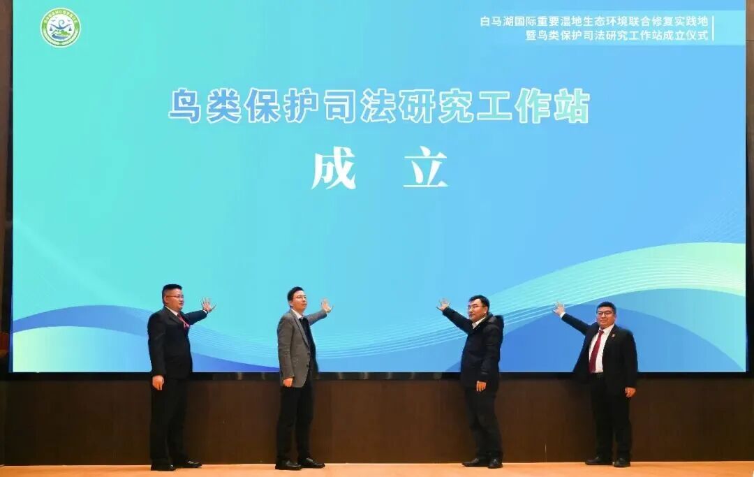 省法院環(huán)資庭庭長(zhǎng)周亞冠、南京環(huán)資法庭副庭長(zhǎng)姜立、盱眙縣法院院長(zhǎng)田庚、淮安中院行政庭副庭長(zhǎng)解思辛共同啟動(dòng)鳥類保護(hù)司法研究工作站成立儀式,通過(guò)多方攜手,為鳥類筑起“安全防線”。