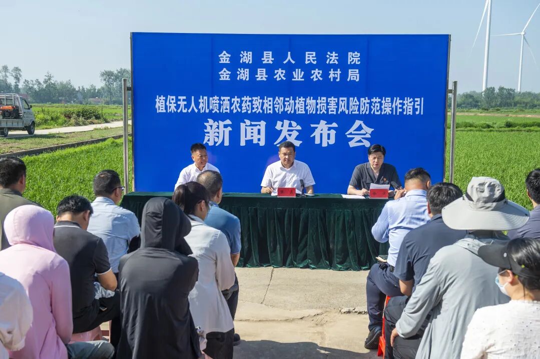 金湖法院召開“植保無人機噴灑農藥致相鄰動植物損害風險防范工作”新聞發布會。