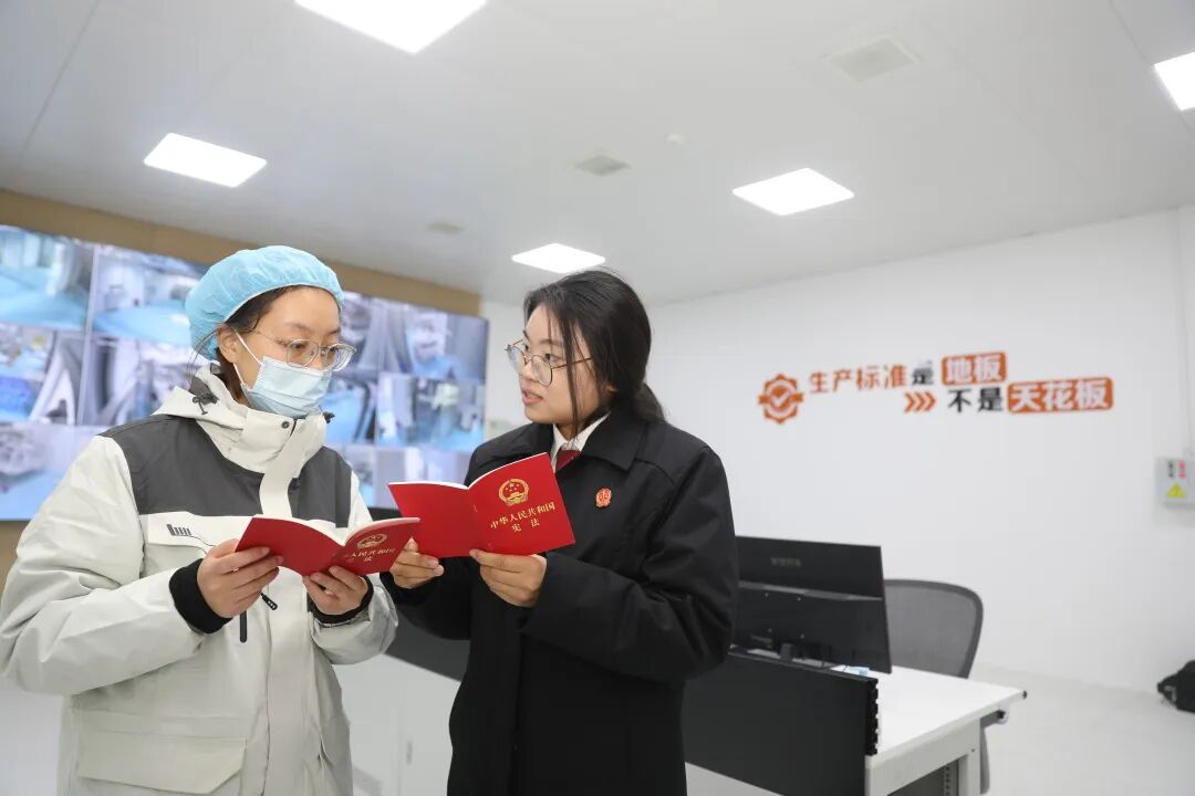 在憲法宣傳周,漣水法院干警深入轄區(qū)企業(yè)開展憲法宣傳。
