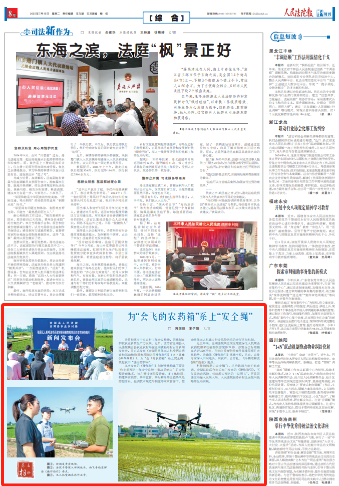 7月15日,《人民法院報》介紹金湖法院如何充分發揮職能,因地制宜護航農業新質生產力發展情況。