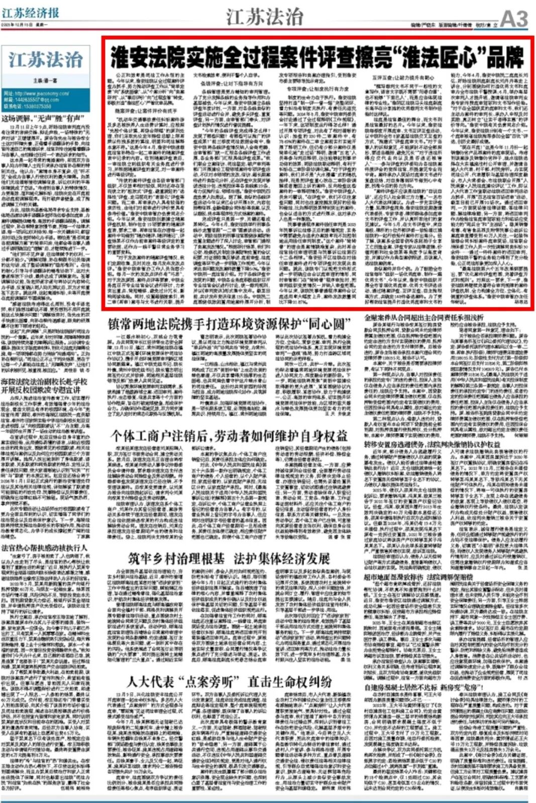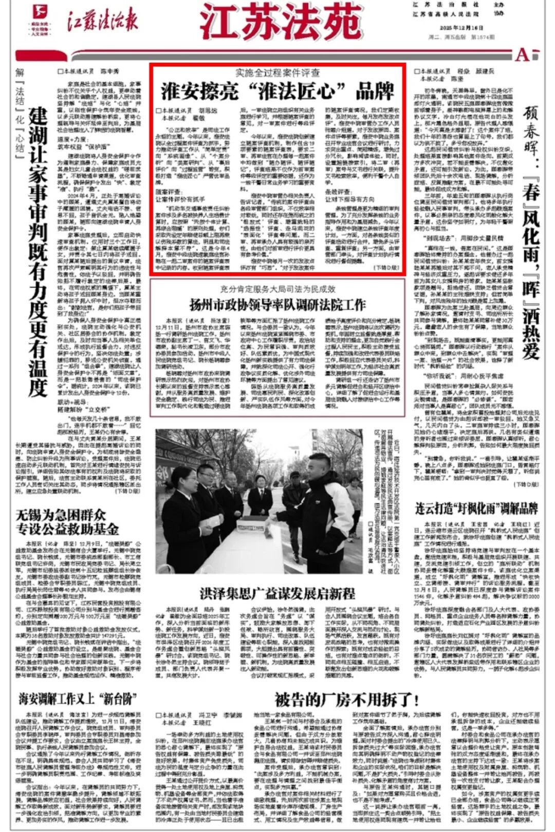 近日,《現(xiàn)代快報(bào)》《江蘇法治報(bào)》《江蘇經(jīng)濟(jì)報(bào)》分別報(bào)道我院打造“淮法匠心”品牌的多項(xiàng)舉措。