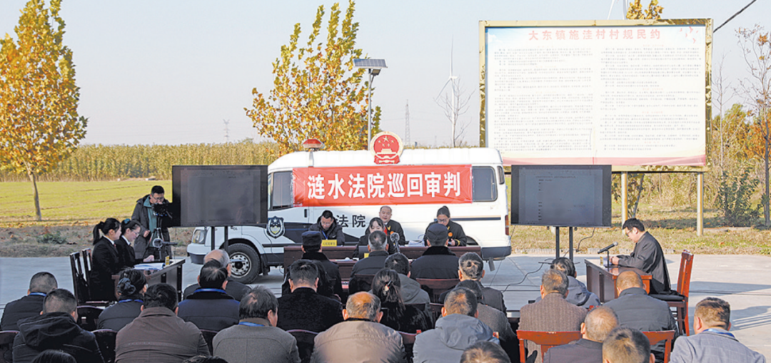 “現(xiàn)在開(kāi)庭!”這是今年11月份一起銷售偽劣產(chǎn)品罪案件的庭審現(xiàn)場(chǎng)。考慮到該案涉及銷售偽劣種子,漣水法院選擇在大東鎮(zhèn)施洼村公開(kāi)審理,并邀請(qǐng)當(dāng)?shù)厝舜蟠怼⒋甯刹俊⒋迕衽月?tīng)。為實(shí)現(xiàn)司法公開(kāi)、代表履職與基層治理深度融合,市人大常委會(huì)、市法院聯(lián)合開(kāi)展“人民滿意+人民法庭建設(shè)評(píng)議”工作,即以人大代表工作室聯(lián)動(dòng)法院巡回審判活動(dòng)為抓手,開(kāi)展“百名法官百場(chǎng)巡審”活動(dòng),截至目前已開(kāi)展92場(chǎng)次。通過(guò)巡回審判,一方面現(xiàn)場(chǎng)接法律話題、答法律問(wèn)題、解法律難題;另一方面,將巡回審判作為檢驗(yàn)法官庭審駕馭能力和臨場(chǎng)應(yīng)變能力的“閱兵臺(tái)”和“主戰(zhàn)場(chǎng)”。陳某銷售有毒、有害食品罪及附帶民事公益訴訟案庭審直播受到40萬(wàn)人關(guān)注;一起裝飾裝修合同糾紛案件庭審現(xiàn)場(chǎng),法官聯(lián)合消保委工作人員一次性調(diào)解同類糾紛30余件……通過(guò)一件件案件的巡回審判,淮安法院干警的業(yè)務(wù)能力得到了充分檢驗(yàn),公正司法形象更加深入人心。